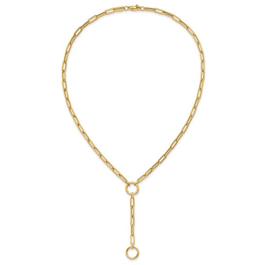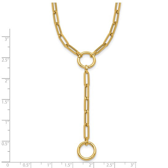 14kt yellow gold 4mm paperclip necklace 18". Two hinged connectors to add charms.